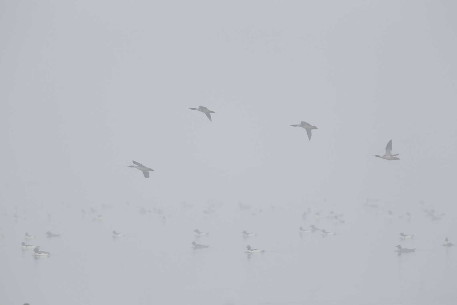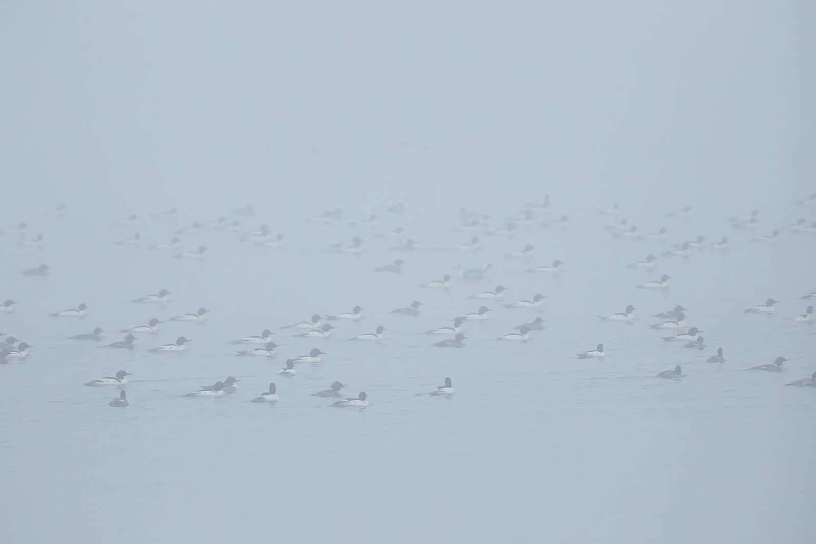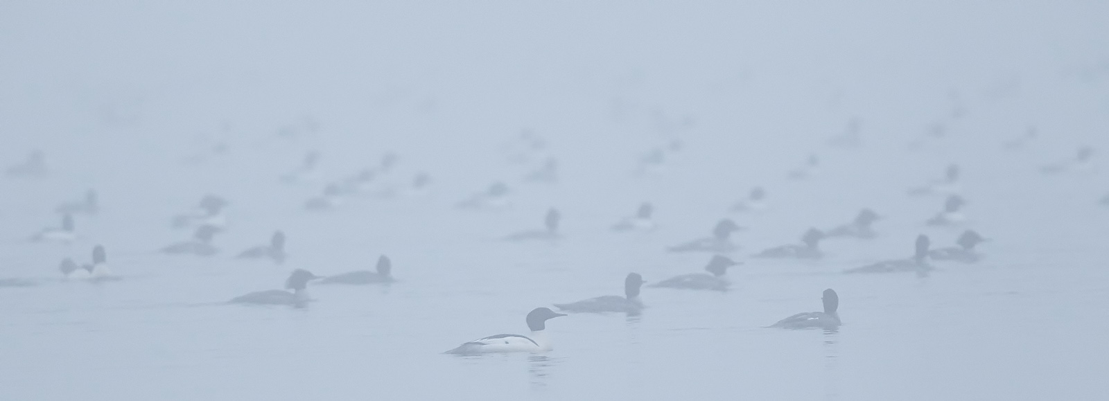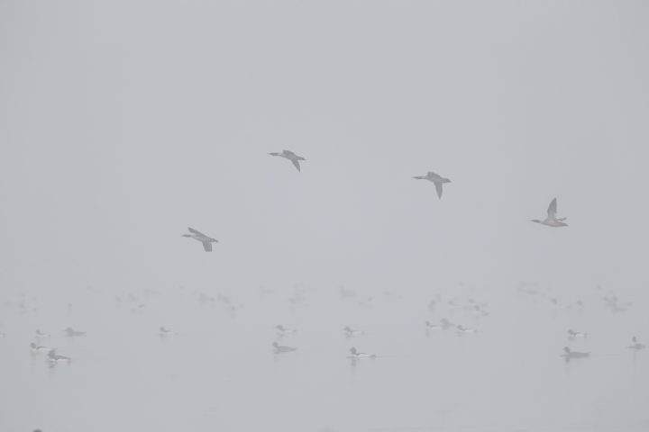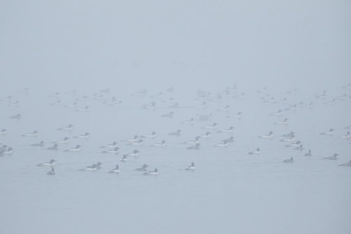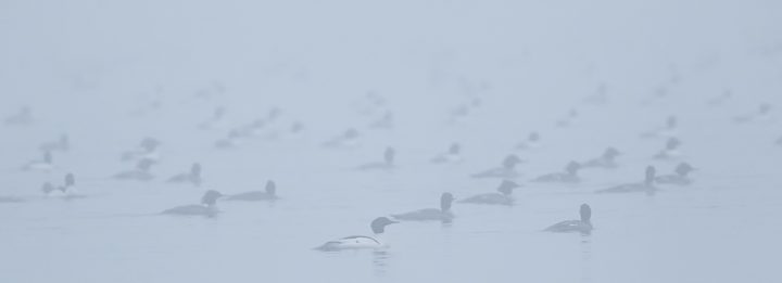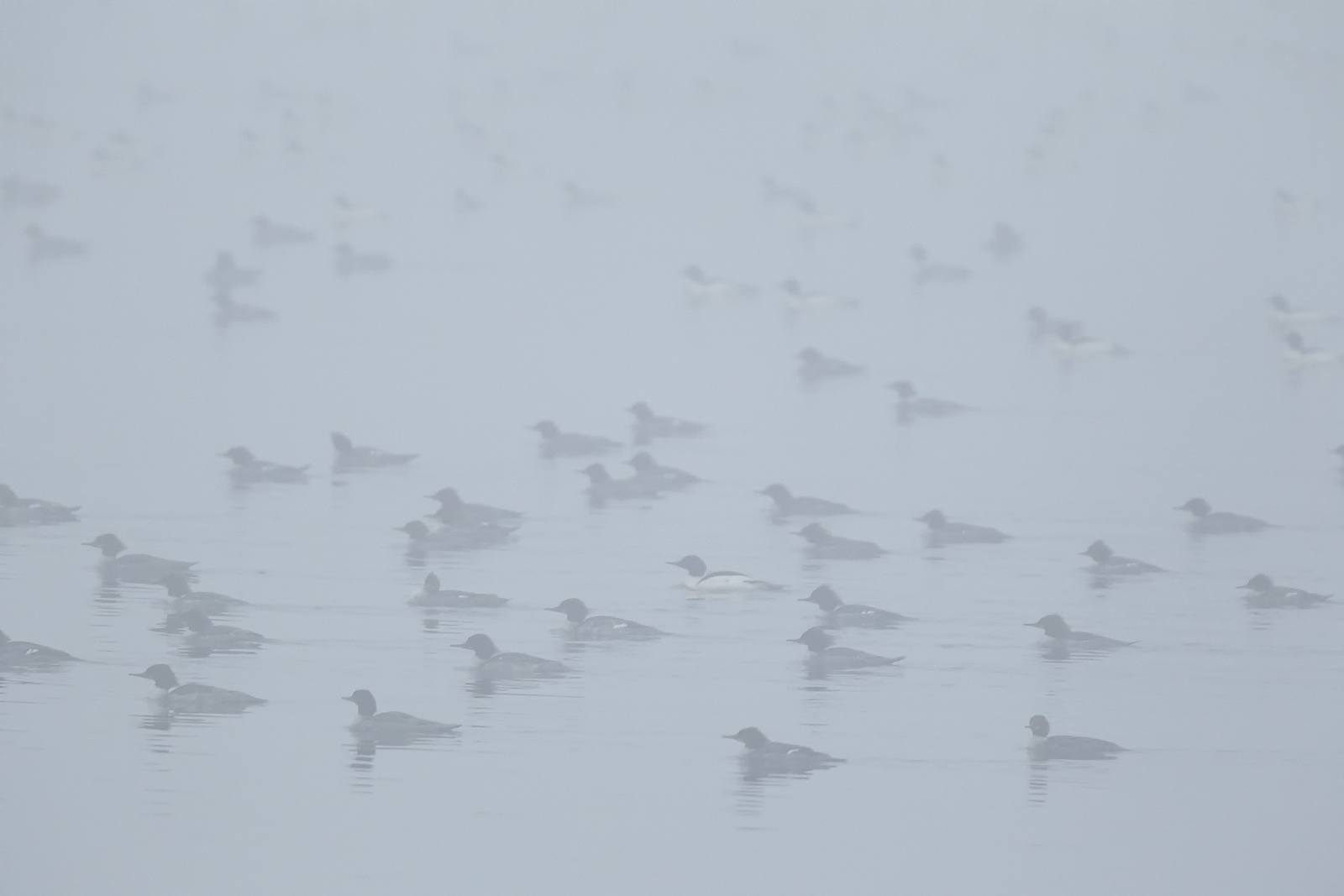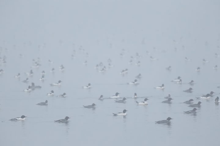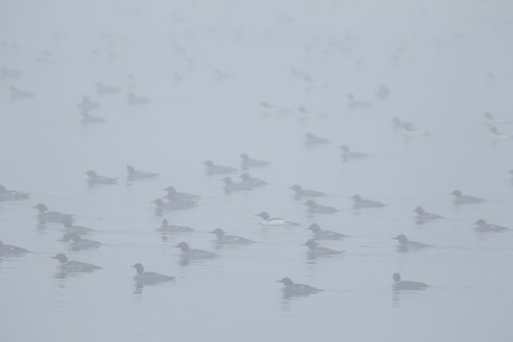 It was awesome watching so many ducks swim around right in front of me yesterday morning at loch raven. Most of them were Common Mergansers, but there were a lot of hoodies also, amongst others. They were pretty much just hanging out near the shoreline, but occasionally the large flotilla would swim out of sight in the heavy fog.
