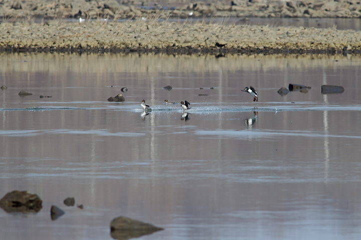 I went to Conowingo Dam in search of Eagles but got skunked (no, no Skunk pictures). ย This is the only pic I returned home with, and even though the Goldeneyes were far away, it is a new species for me, so here it is…